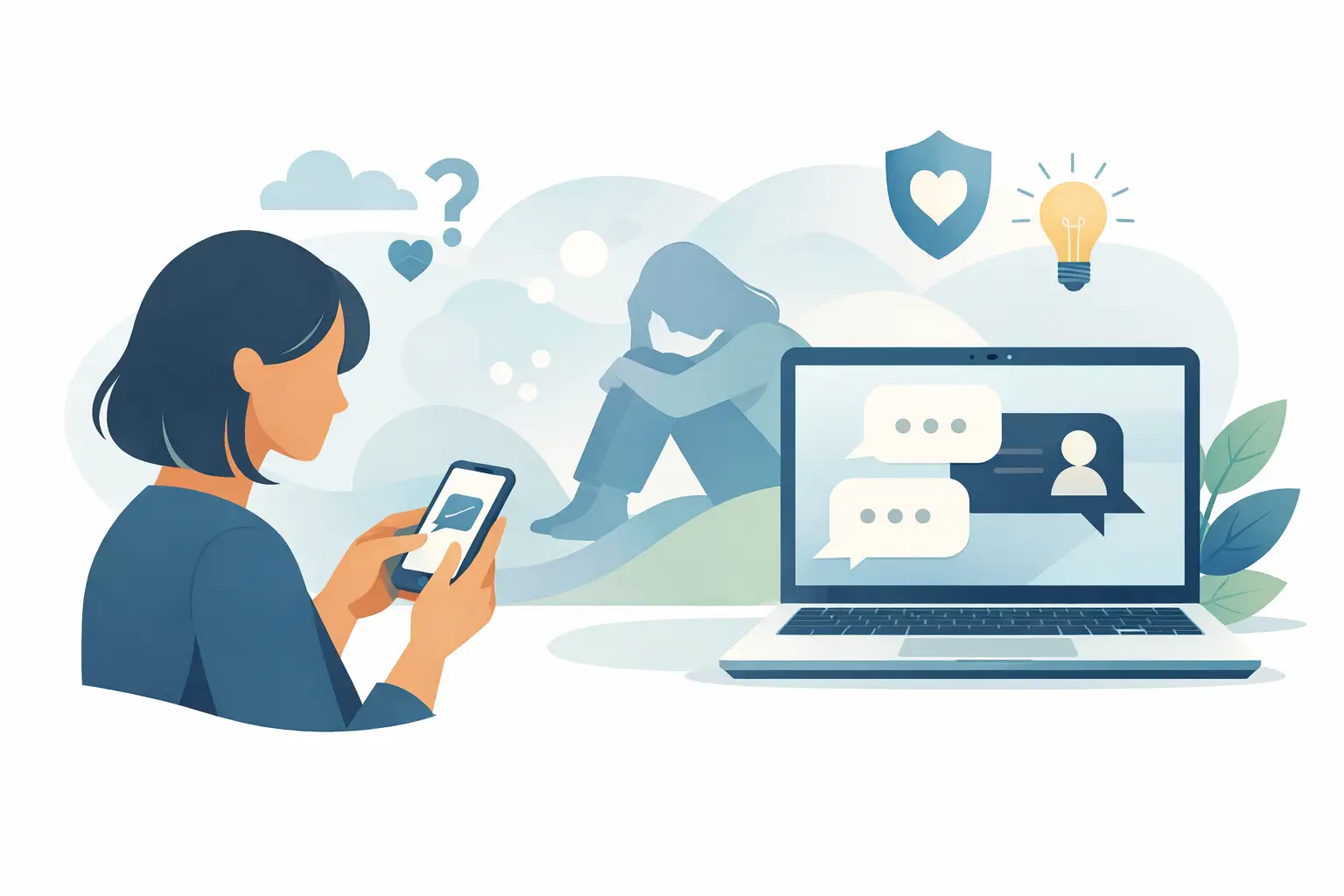 Textbaserat samtalsstöd vid oro är ett första steg — inte behandling och inte akuthjälp.